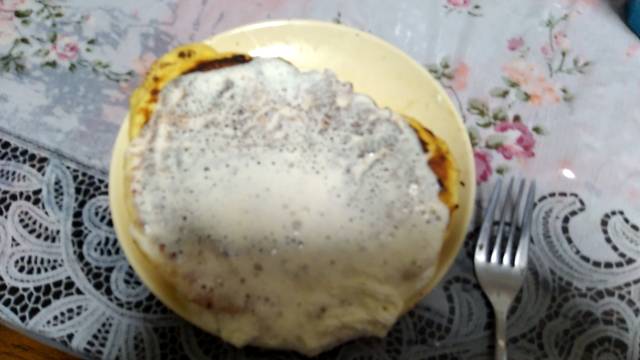 妹様がパンケーキ作ってくれた~!めちゃ美味しい…((クリームめちゃくちゃかけてくるが